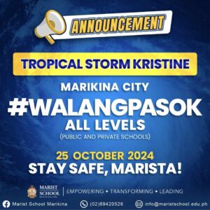 In reference to the announcement from the Marikina LGU, classes in all levels and office work will remain suspended tomorrow, October 25, 2024 (Friday).