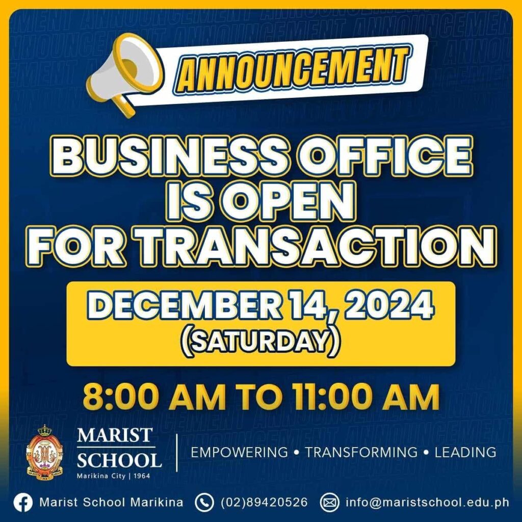 Please be informed that the Business Office is open for transactions on December 14 (Saturday), from 8:00 AM to 11:00 AM only.